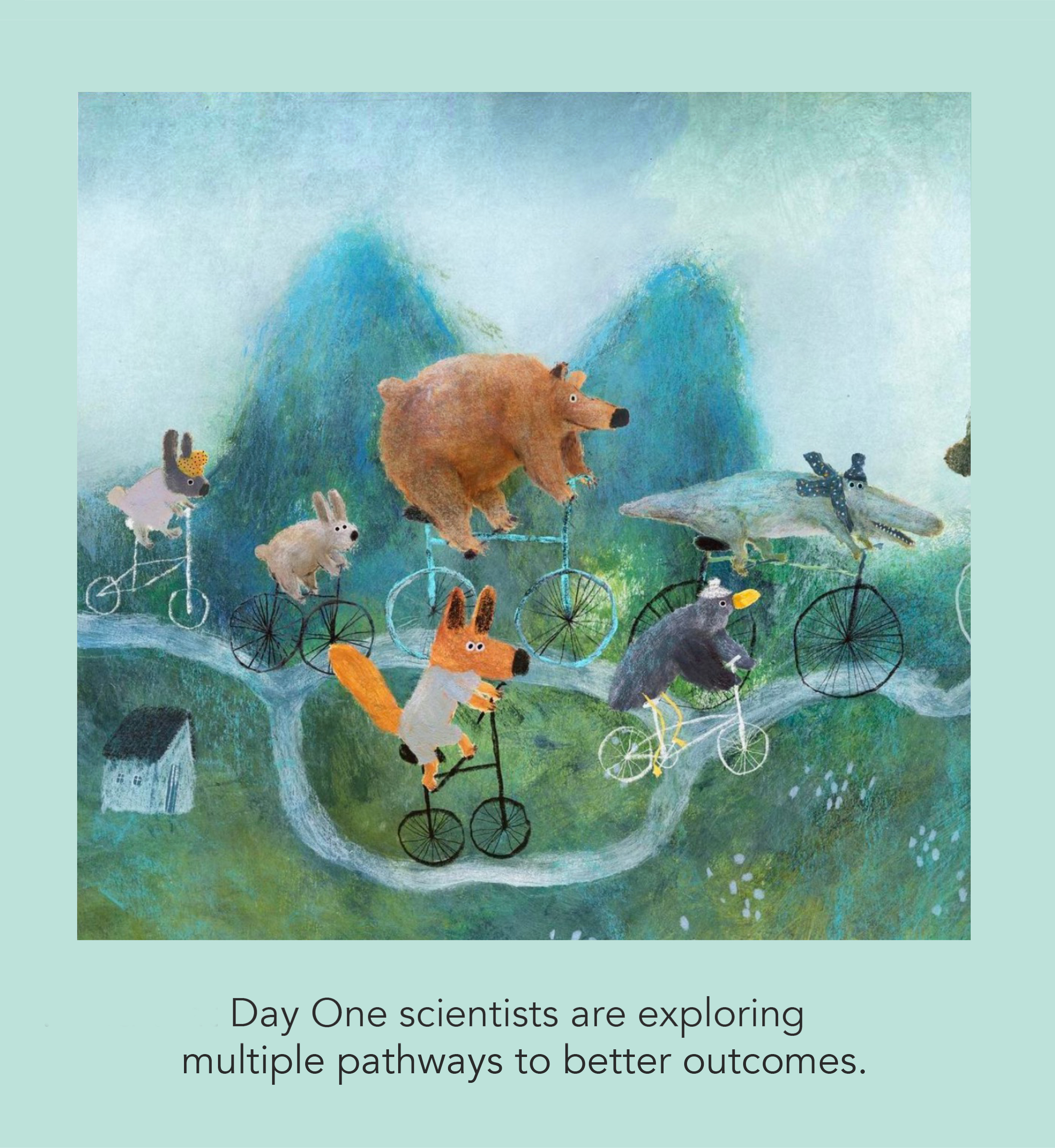 We used endearing animal illustrations to represent real doctors, patients, and researchers, and expressed their childlike excitement about new discoveries in the BRAF-V600E point mutation and BRAF wildtype fusions.